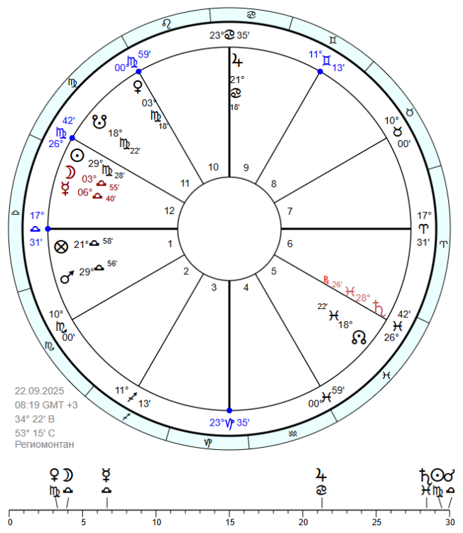 Хорарная карта 22.09.2025 8:19 34E22 53N15 +3. Вы Венера и Луна, подруга - Меркурий. Венера и Меркурий находятся во взаимной положительной рецепции. Плохой Марс, находящийся в 1 доме и по натуральным свойствам показывающий ссору, скоро поменяет знак и войдет в знак своего владения. Должны помириться, скорее всего в ближайшее время, в течение 3 дней. Возможно, разбор полетов будет жарким, но все закончится хорошо.