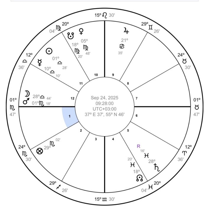 Здравствуйте! Дайте, пожалуйста, ваши данные для натальной карты: дату, время (по бирке) и место рождения. А также место, где сейчас проживаете.