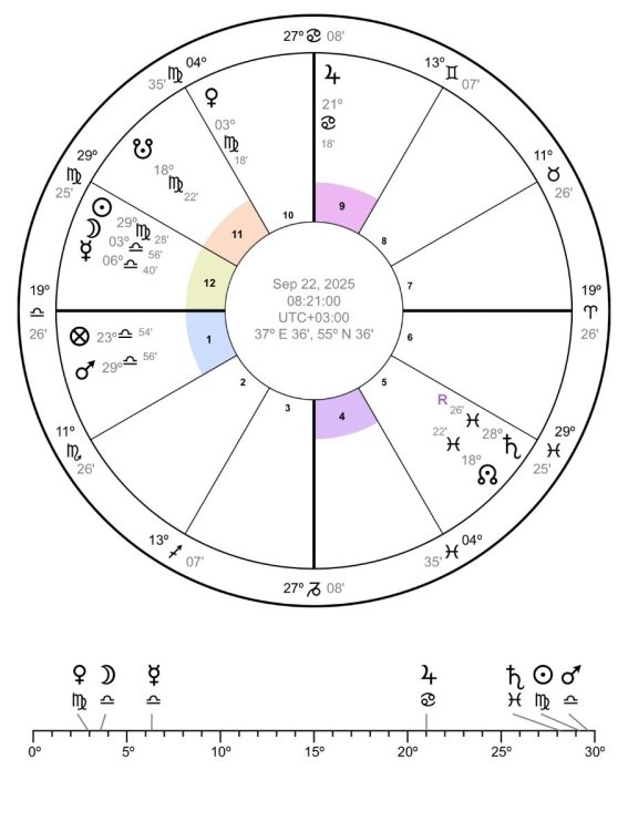 Здравствуйте! Дайте, пожалуйста, ваши данные для натальной карты: дату, время (по бирке) и место рождения. А также место, где сейчас проживаете.