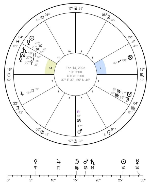 Что может быть интереснее вопросов отношений? Пожалуй, только сами отношения. История кверента. Одной девушке уж очень хотелось бурного развития отношений с молодым человеком, который ей очень нравился. Поэтому она задала мне вопрос: «Как относится к ней МЧ и ждать ли серьезных намерений?» Прогноз. Построив карту, я увидела, что МЧ - хитрая планета Меркурий в Деве - очень уж статусный и достойный (Меркурий полон благородства), кроме того, он достаточно верный (мужское начало, Солнце во Льве в достоинстве), но при этом изворотлив и себе на уме в силу природы планеты Меркурия. Сама девушка настроена на серьезные отношения с этим МЧ (планеты Юпитер и Венера находятся во власти Меркурия, плюс Венера по положению в 8ом доме, 2ой дом мужчины, хочет внимания и заботы от него). Ретроградность Меркурия навела на мысль, что ранее девушка уже общалась с этим МЧ и как будто снова возвращается к этим отношениям. И да, девушка подтвердила это. Но рассматривает ли молодой человек эту девушку для таких же взаимных отношений? Судя по всему, Меркурий самодостаточен и ему все равно на эту девушку от слова совсем. После моих расспросов о МЧ, девушка подтвердила, что не так давно они договорились о встрече, но парень даже не написал и не вспомнил о ней. Мой прогноз был таков, что дальнейших шагов по отношению к девушке парень предпринимать не станет, выйдет на связь, но долгосрочных и серьезных отношений от него не придётся ожидать. Что было на самом деле. Спустя время, кверент рассказала, что МЧ написал ей, но на этом их общение завершилось. Хорошо, когда с помощью астрологии можно заглянуть в будущее и понять, стоит ли тратить время на что-либо. Лучше направить свою энергию в другое русло. Прогнозы по отношенческим вопросам всегда тяжело воспринимаются, когда человек не готов слышать правду от астролога.