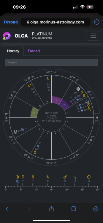 17. 3. Венера транслирует тригон на МС в 28 гр Весов(7 дом) Возможное устройство на работу, но эта дирекция приходится на конец солярного года! И может вам предвещать события на следующий год.