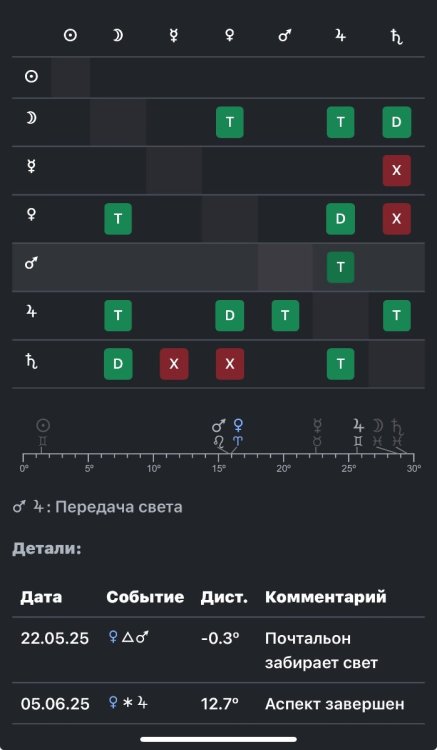Федор, такой вопрос, как ваши финансы связаны с 4 домом( недвижимость к примеру) и как недвижимость связана с вашей проф деятельностью? Венера (у2) в среднем состоянии и не очень расположена дарить богатство, особенно находясь в сходящемся аспекте с Марсом в Весах( изгнание). Такой Марс не будет приносить ничего хорошего кроме чрезмерных затрат и потерь! Тем самым он ухудшает состояние Венеры! Венера проявляет себя на фоне Солнца, но находясь в среднем состоянии и в 12 доме оно может смягчать зло 12 дома и только изредка приносить проблемы Венере! Но аспектируя Венеру оно несет свой жар в свою обитель и тем самым умеренно благоприятно влияет на нее! Но потенциал этой благоприятности с годами будет уменьшатся - аспект расходящийся! Луна и ее оппозиция - Вы и 8 дом, скажем так, дом чужих денег. Луна - средняя в плохом доме, ослаблена Аспект расходящийся, значит влияние будет ослабевать! Итог- брали кредиты, вероятней всего на недвижимость, благоустраивали ее. Доходы раньше были другие, могли заработать где то еще! Но 23 год был надлом- и остался шлейф! Что было?