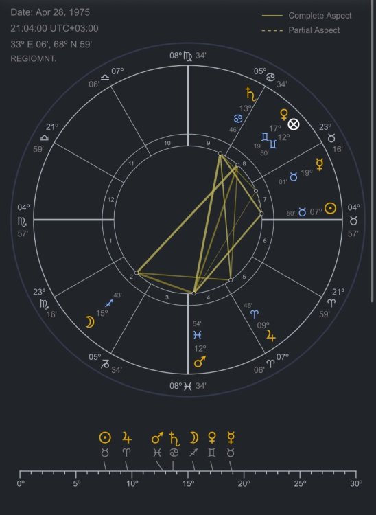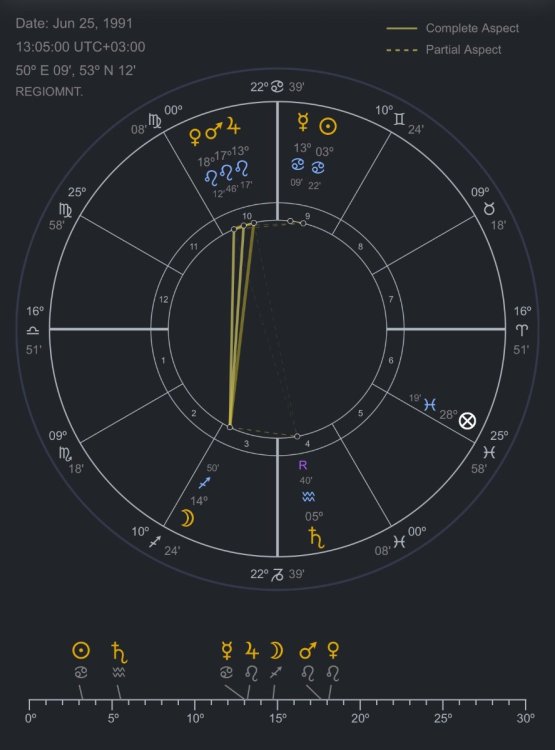 Доброго времени суток, Ольга! Вы хотите получить информацию о вашей Луне в натальной карте! В первую очередь я хочу рассказать о вашем втором доме. Второй дом отражает наши доходы, деньги, которые мы зарабатываем, а также то, как мы управляем ресурсами. Если планеты находятся в этом доме, они могут дать представление о том, как вы обращается с финансами – склонен ли он к экономии или, наоборот, к расточительству. Как раз в вашем втором доме и находится Луна. Значит она является главным управителем этого дома! Она находится в знаке Стрельца и положение в этом знаке даёт средние по качеству и количеству дела этого дома. Луна, по своему натуральному значению, обозначает детей, путешествия, переезды, мать. В вашей карте Луна так же управляет девятым домом, и акцидентально относится к восьмому дому, что делает ее соуправителем этого дома. Значит состояние этих домов зависит от эссенциальных достоинств Луны! Стоит обратить внимание на диспозитора Луны- Юпитер, управитель Стрельца. Он тоже бенефик и находится в среднем состоянии. В вашей карте он дважды связывает Луну с пятым домом – своей диспозицией и аспектом! И усиливает тем самым эту связь! Рассмотрим, что может еще влиять на вашу Луну! И тут вступают в действие аспекты от других планет. 1. Юпитер(5-11) аспектирует, как я уже говорила, вашу Луну на 25 процентов на тригоне! Аспект расходящийся, значит переодическое влияние этого аспекта будет уменьшаться, этот аспект не несет зла, и по тригону передает свои лучшие юпитерианские качества по натуральному значению. 2. Марс(4-10)– второй аспектант вашей Луны. Хотя его состояние немного выше среднего, но он малефик и через аспект квадратуры, он будет привносить сложности Луне. Но это тоже расходящийся аспект, а значит сила этого аспекта будет уменьшаться. 3. Венера(8-2)- третий аспектант. Венера, как бенефик, ослаблена своим положением в восьмом доме и имея средние эссенциальные достоинства, не будет отменять зла, она будет только смягчать это зло и эти свои качества она со 100 процентной силой транслировать на Луну. Аспект сходящийся и будет переодически усиливаться! Итог: Луна- как управительница 2 дома, не будет приносить вам особых благ и, если будут возникать проблемы в делах второго дома, они будут проходить в более мягкой, не критичной форме. Луна не будет вас вводить в состояние полного банкротства- всегда будет находиться выход из сложных ситуаций. С ув. Елена