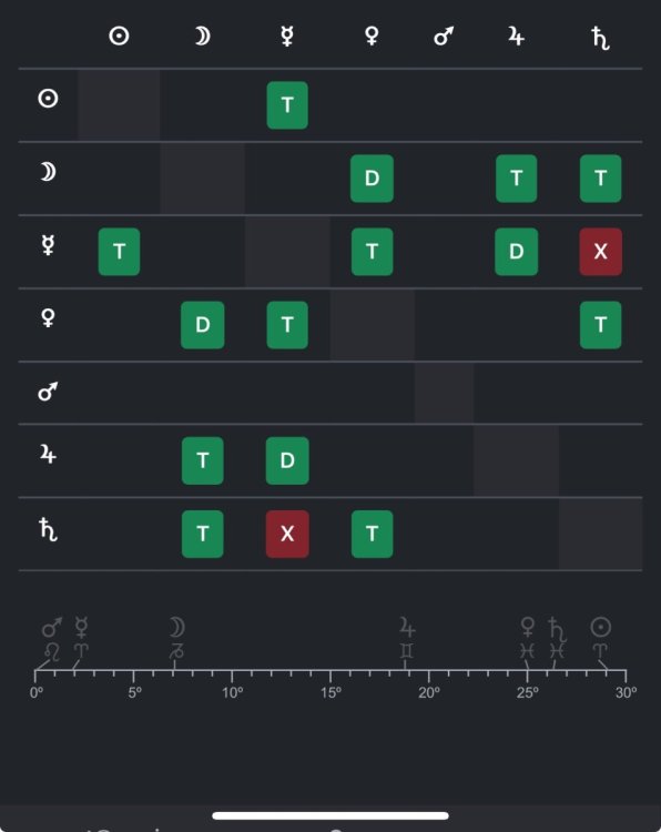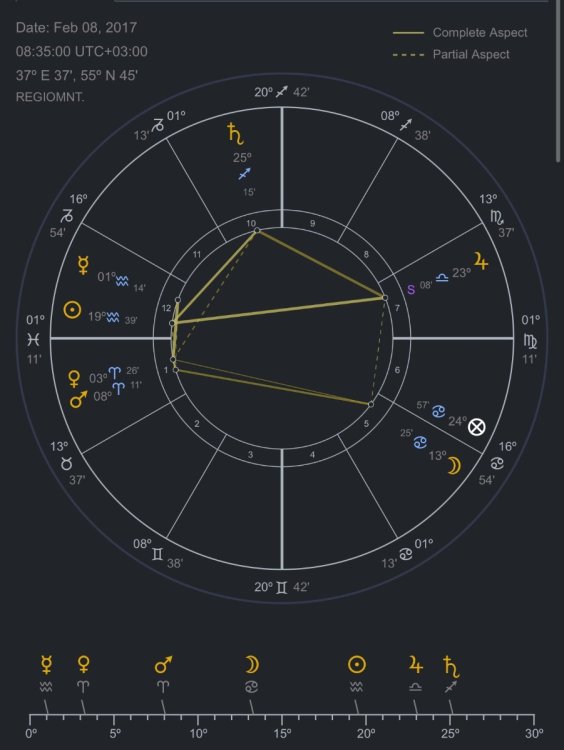18. Татьяна, простите если я вас чем то зацепила! Обидеть я вас не хотела! Я построила вам карту! Она выделила 7 дом. Марс полностью заинтересован собой любимым, Солнце - тоже зациклена на себе! Аспектов между вами нет! Единственное- ингрессия солнца через 1 гр. и стоит на куспиде 1 дома! Переход солнца в тельца может предположить заинтересованность партнера в вас как в женщине, - а это про любовника! Дайте о себе знать!